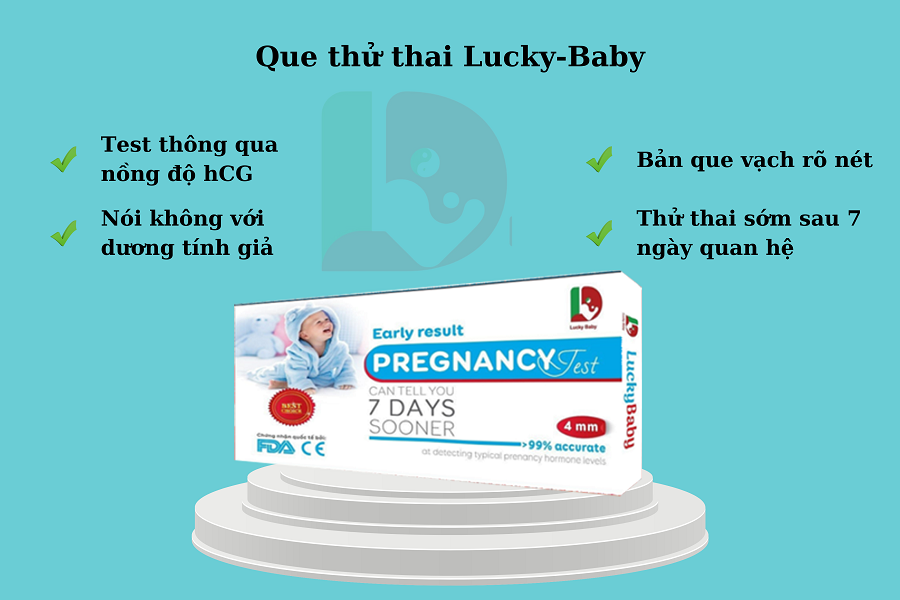 Thông thường, khi trứng đã làm tổ và nhau thai bắt đầu phát triển, nồng độ hCG được tiết vào máu và nước tiểu, tăng dần lên ở những tuần thai tiếp theo. Do đó khi sử dụng que thử thai sớm có thể giúp phát hiện có thai nhờ việc phản ứng với nồng độ hCG trong nước tiểu. Hiện nay có rất nhiều loại que thử thai sớm trên thị trường. Nhưng que được các chuyên gia khuyên dùng là que thử thai sớm Lucky-Baby với các ưu điểm vượt trội.