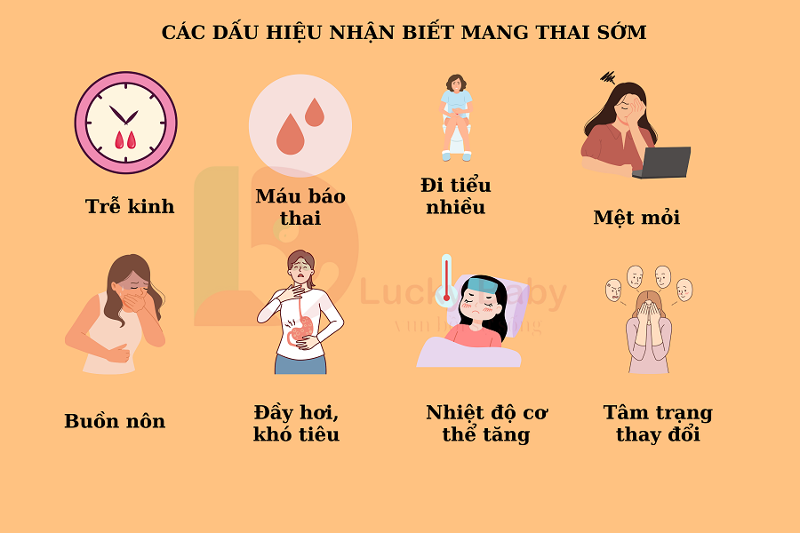 - Chậm Kinh : Chậm kinh là dấu hiệu mang thai phổ biến nhất. Khi quá trình thụ thai hoàn tất, cơ thể sản sinh hormone hCG, ngăn cản chu kỳ kinh nguyệt tiếp theo.