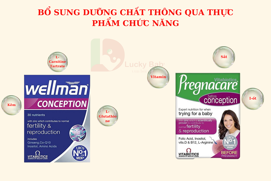 - Đối với nam giới bổ sung Wellman Conception : Wellman Conception là một sản phẩm dành riêng cho nam giới, giúp bổ sung đầy đủ các vitamin và khoáng chất quan trọng cho sức khỏe sinh lý và sinh sản. Sản phẩm này chứa các thành phần như vitamin C, D, E, kẽm, và selenium, giúp cải thiện chất lượng tinh trùng, tăng cường khả năng thụ thai. Wellman Conception còn có tác dụng chống oxy hóa, bảo vệ tế bào tinh trùng khỏi sự tổn thương do các gốc tự do, từ đó nâng cao sức khỏe sinh sản. Bên cạnh đó, sản phẩm hỗ trợ sự cân bằng hormone, giúp nam giới duy trì phong độ và khả năng sinh sản tối ưu. Sử dụng Wellman Conception đều đặn là một trong những biện pháp hiệu quả để tăng cường sức khỏe sinh sản cho nam giới, đặc biệt là trong giai đoạn chuẩn bị có con.
