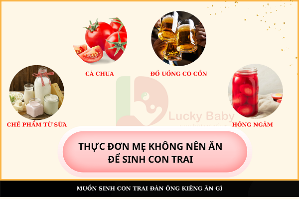 Phomai và các thực phẩm từ sữa : Phụ nữ nên kiêng ăn phô mai và các thực phẩm từ sữa. Đây là những thực phẩm giàu hàm lượng canxi và chứa nhiều axit bão hòa. Canxi và axit bão hòa trong phô mai và sữa có thể làm tăng độ axit trong cơ thể, tạo môi trường không thuận lợi cho tinh trùng Y. Môi trường axit này làm giảm khả năng sống sót và di chuyển của tinh trùng Y, từ đó làm giảm cơ hội thụ thai con trai. Việc hạn chế tiêu thụ phô mai và các sản phẩm từ sữa sẽ giúp duy trì một môi trường kiềm trong âm đạo, thuận lợi hơn cho tinh trùng Y. Chế độ ăn uống hợp lý và kiêng khem đúng cách là yếu tố quan trọng giúp tăng khả năng thụ thai con trai, vì vậy việc chú ý đến những loại thực phẩm này là rất cần thiết.Đồ ăn cay và các loại nước sốt : với độ PH 2,8 đến 3,7