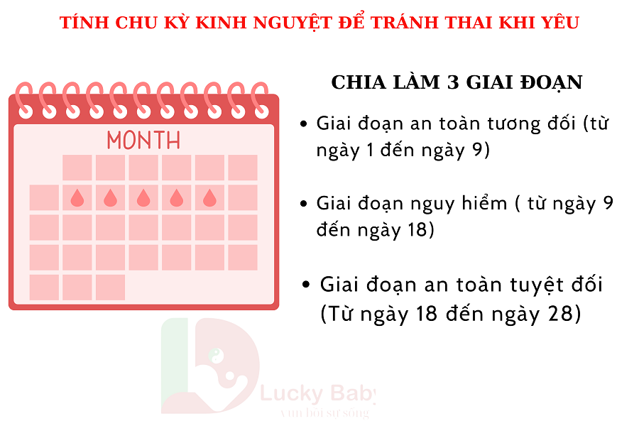 Muốn tránh thai tự nhiên mà không cần dùng thuốc, chị em phụ nữ phải hiểu được chu kỳ kinh nguyệt là quá trình tự nhiên xảy ra hàng tháng ở phụ nữ. Chu kỳ này bắt đầu từ ngày đầu tiên của kỳ kinh nguyệt và kéo dài đến ngày đầu tiên của kỳ kinh tiếp theo, thường khoảng 28 đến 32 ngày. Thời điểm rụng trứng thường rơi từ ngày thứ 14 hoặc ngày 18 của chu kỳ, từ đó có thể tính ngày an toàn của chu kỳ kinh nguyệt để ngừa thai một cách hiệu quả hơn. Ta có thể chia chu kỳ trên thành 3 giau đoạn sau: