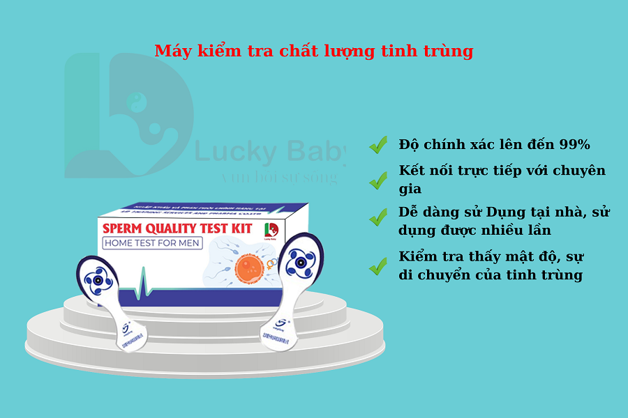 Việc kiểm tra tinh trùng bằng mắt thường tuy đơn giản nhưng để đưa ra kết luận chính xác về các tình trạng tình trùng có màu vàng hay tình trùng bị yếu, dị tật là chưa thuyết phục. Để việc kiểm tra tinh trùng màu vàng có ảnh hưởng đến sinh sản của đàn ông hay không. Bạn nên chọn máy test tinh dịch của thương hiệu Lucky-Baby (SPERM QUALITY TEST KIT). Khi sử dụng sản phẩm, người dùng hoàn toàn có thể nhìn thấy được trực tiếp mật độ cũng như sự di chuyển của tinh trùng với độ chính xác lên đến 99%. Ưu điểm khi mua máy xét nghiệm tinh trùng của Lucky-Baby Có sự hỗ trợ từ các chuyên gia sinh sản 24/7. Nếu bạn gặp các vấn đề về việc sử dụng máy và đọc kết quả, chất lượng tinh trùng không tốt.