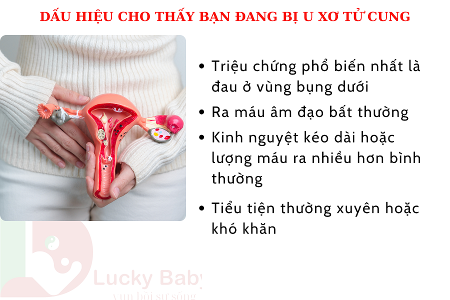 Ra máu âm đạo bất thường cũng là một dấu hiệu quan trọng, với kinh nguyệt kéo dài hoặc lượng máu ra nhiều hơn bình thường. Trong một số trường hợp, bụng của người bệnh có thể to lên, tạo cảm giác căng tức.